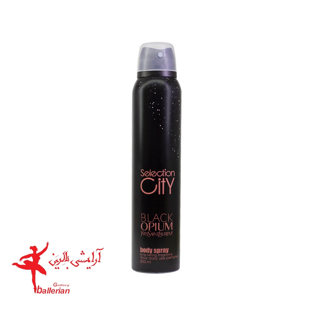 اسپری بدن زنانه سلکشن سیتی مدل Black Opium حجم 200 میلی لیتر
