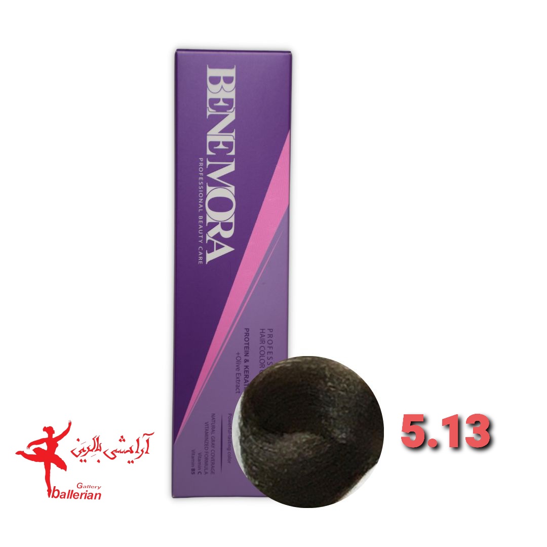 رنگ مو بن مورا شماره 5.13 حجم 100 میلی لیتر رنگ قهوه ای خاکستری طلایی تیره Ben Mora hair color 5.13 100 ml