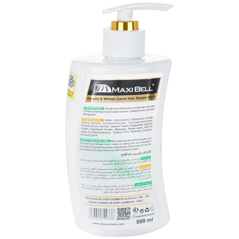 ماسک کراتین و جوانه گندم مکسی بل تغذیه کننده، آبرسان موها و کنترل کننده ی ریزش موها می باشد. این ماسک فاقد سولفات و پارابن بوده و با فرمولاسیون منحصر به فرد خود ترمیم کننده موهای آسیب دیده است و نهایت استحکام تارهای مو را حاصل می سازد.